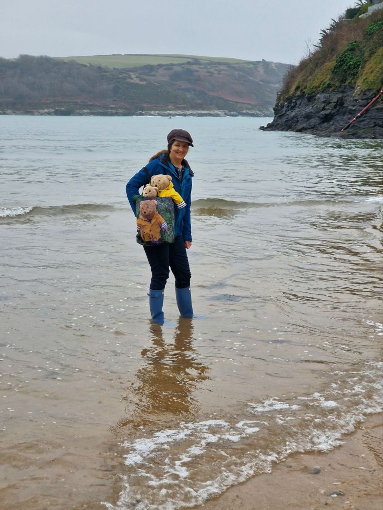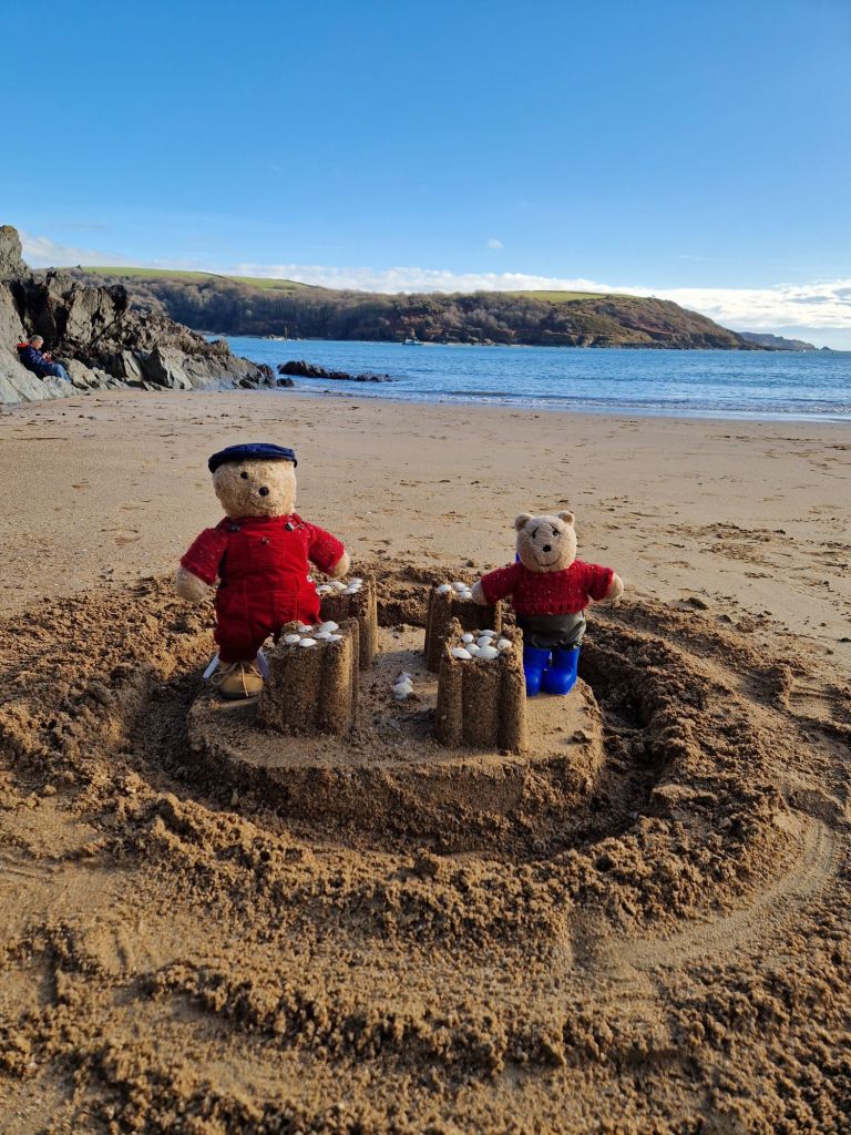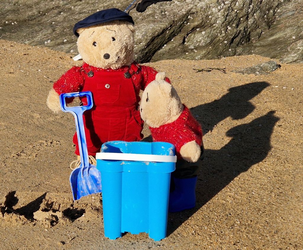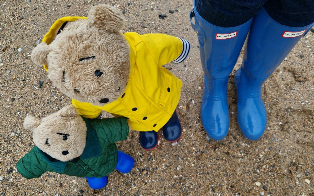On the beach we had to be very careful as wellington boots are a bit of a liability for teddy bears when paddling. We are not heavy enough to hold the boots down so they can float up in water and make us fall over, so we only walked on the wet sand.