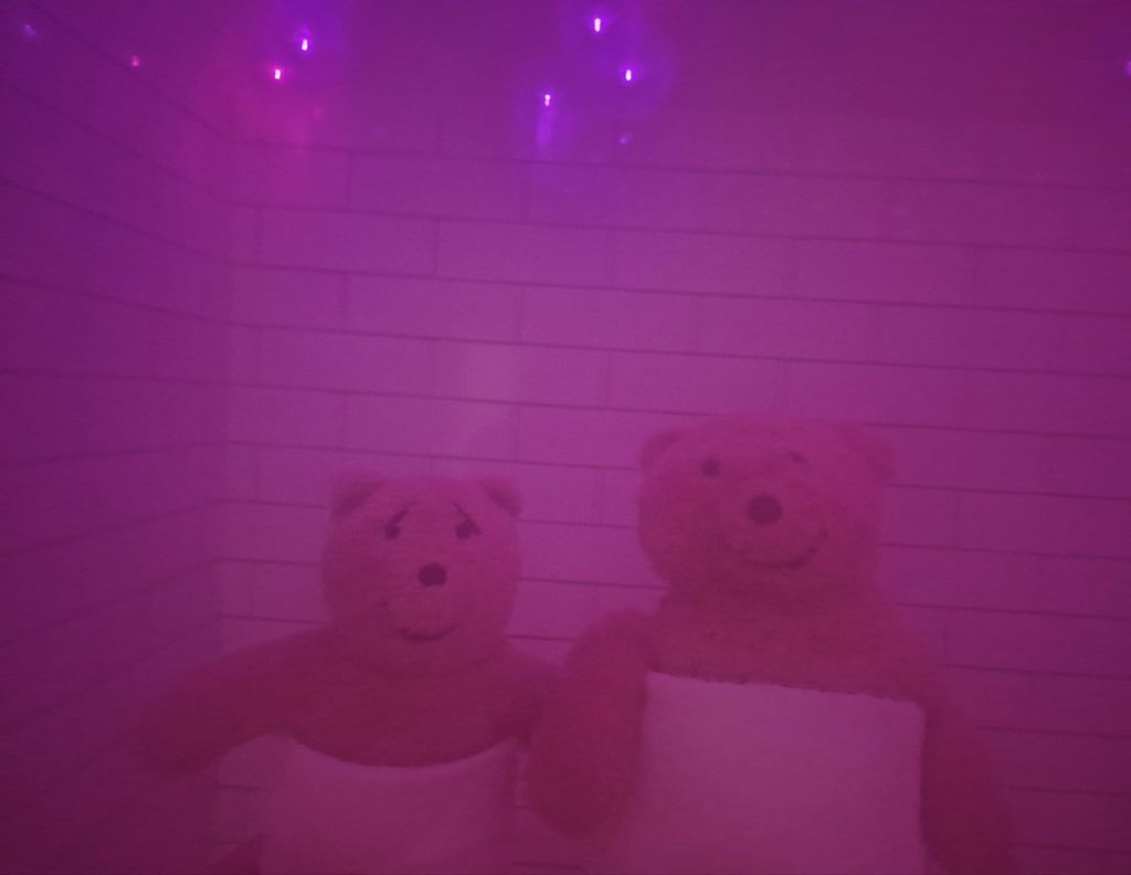 The steam room looked very pretty with lights on the ceiling. We managed about 15 seconds in the steam room, it was far too humid and hot for bears.