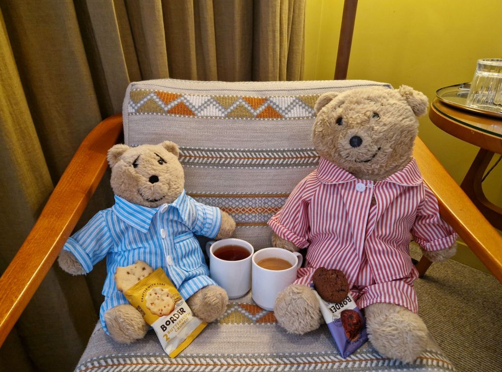Sometimes a bear needs an early night with a tasty biscuit supper.