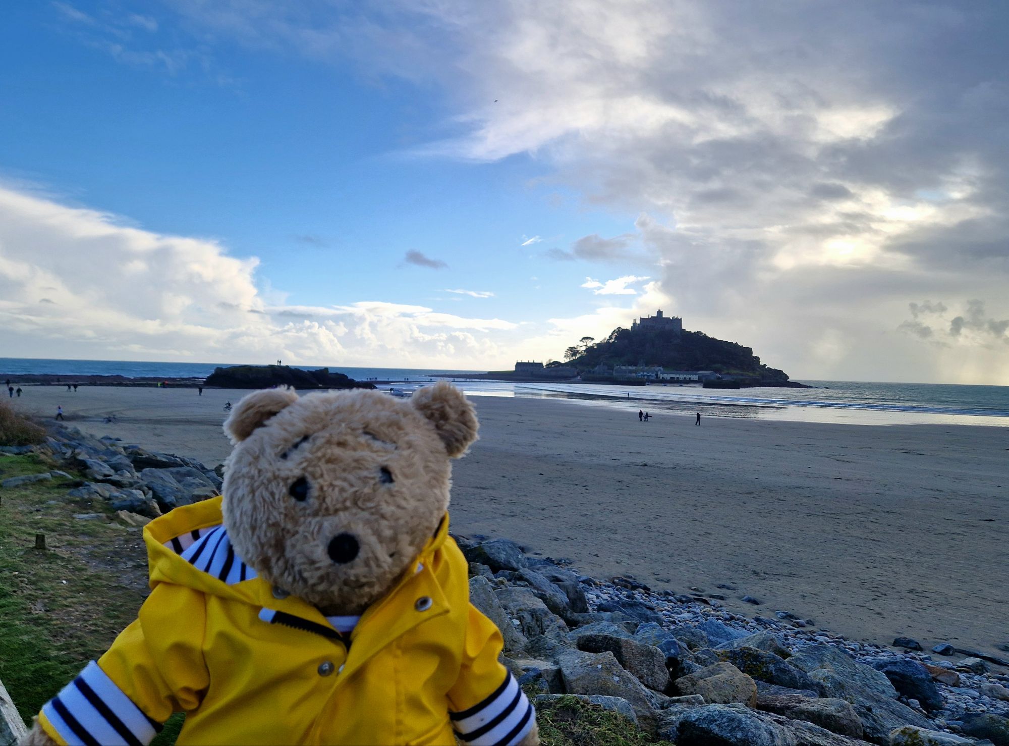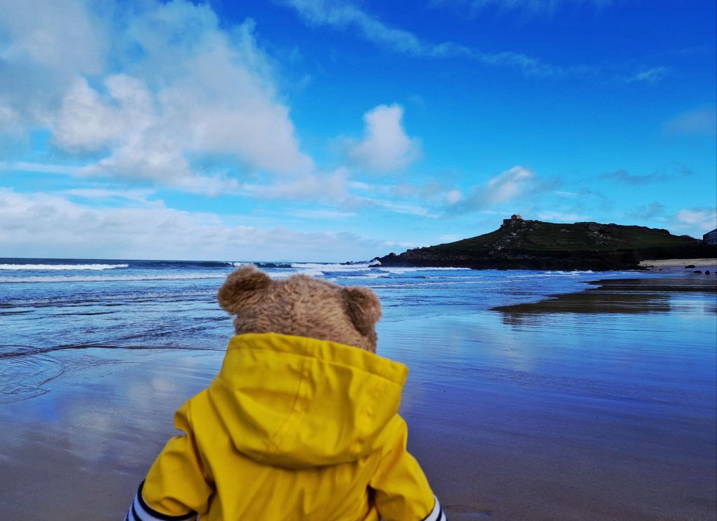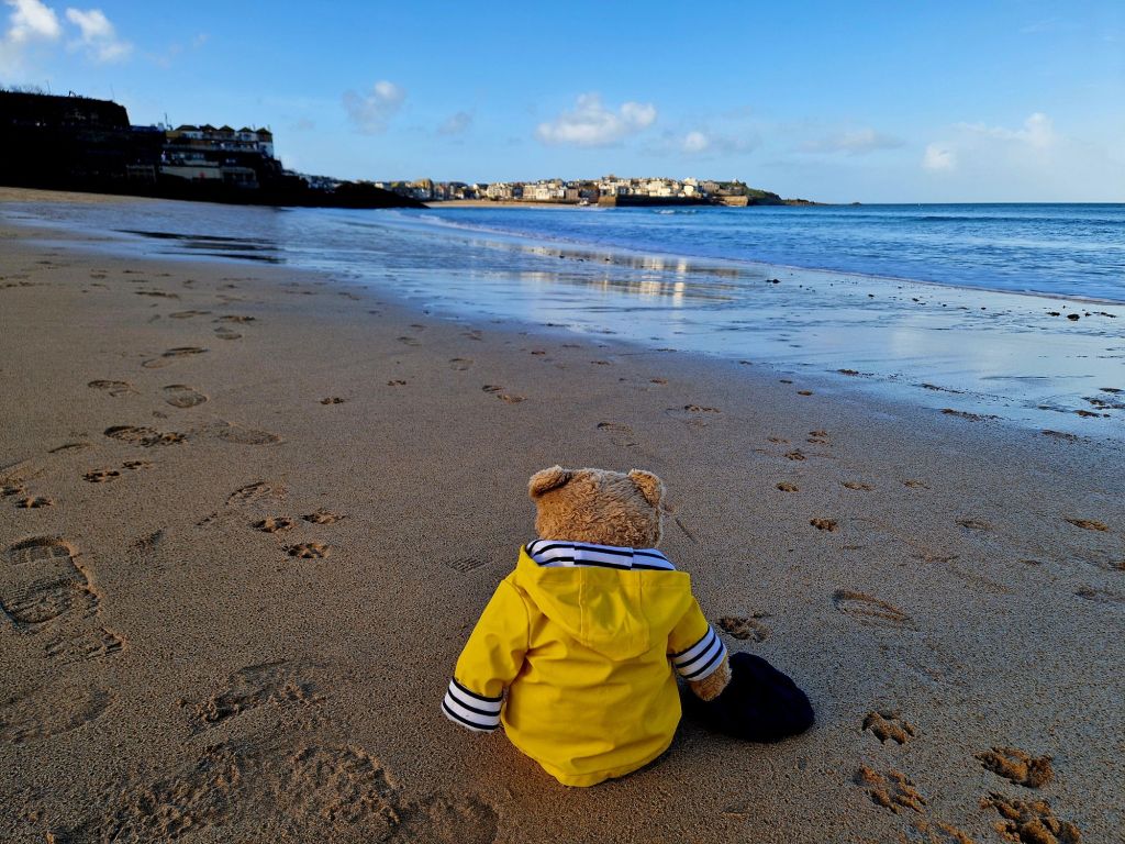 On the beach we had to be very careful as wellington boots are a bit of a liability for teddy bears when paddling. We are not heavy enough to hold the boots down so they can float up in water and make us fall over, so we only walked on the wet sand.