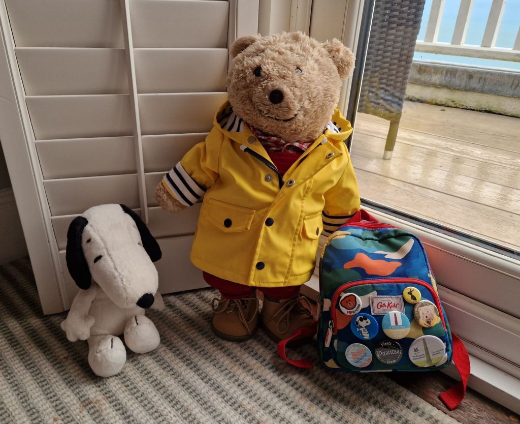 Humans weighs quite a lot more than teddy bears so their wellies don’t float up in water. We were able to have a little paddling trip with Karen, safely tucked inside the new bear carrier.