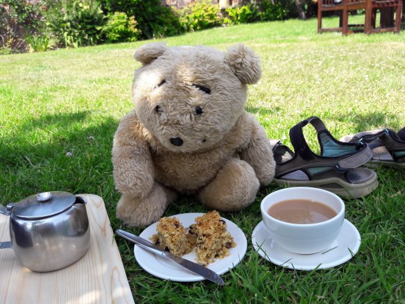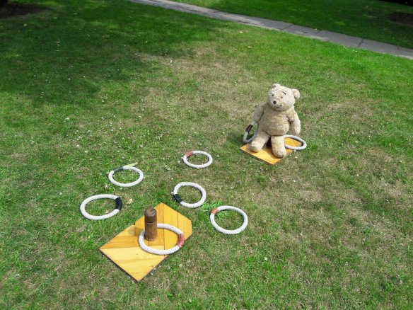 On the lawn I tried out my quoits skills. I am quite good for a small bear.
