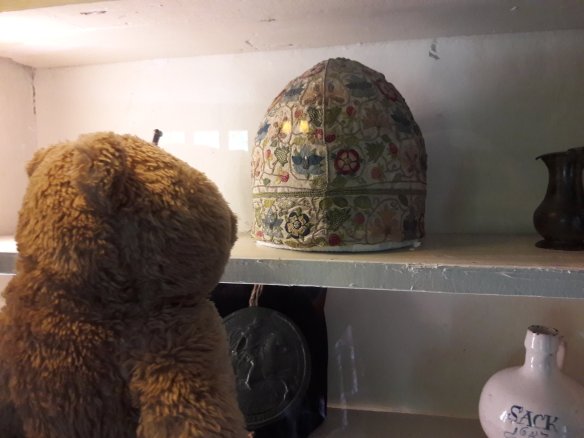 I spotted a very interesting tea cosy in a glass case. The humans laughed and said it was a priest’s hat.
