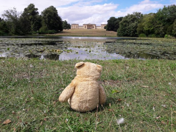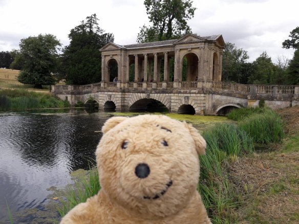My human picked me up again and tucked me under her arm as I was starting to walk very slowly. The estate really is very big and a few hours are needed to see everything. Here I am having a rest while looking at the view from The Palladian Bridge. I am quite difficult to spot as the bridge is quite big and I am small!
