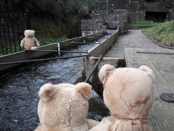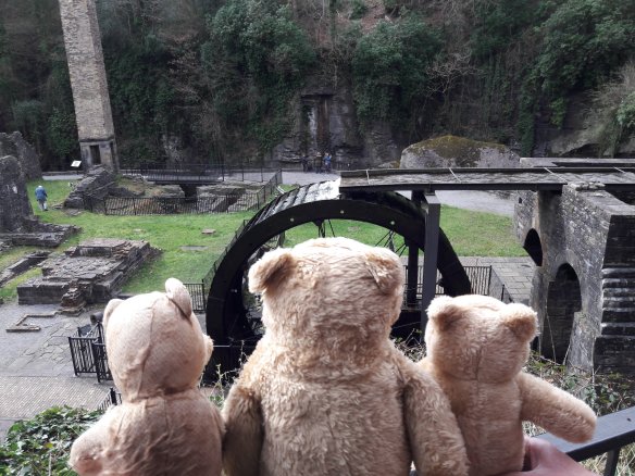 Growler and Nye (who promised not to cause any mischief) came along with me to visit Aberdulais falls and waterwheel.