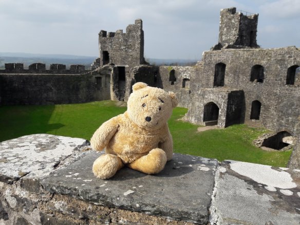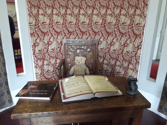 The sun was shining outside so we set off to explore the grounds of Dinefwr, where I was hoping to somewhere find some white cows. I found a very old true that had a special hidey hole just right for bears.