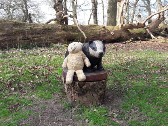 There were some wooden sculptures of animals dotted around the park. Here I am with a wooden badger.