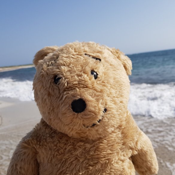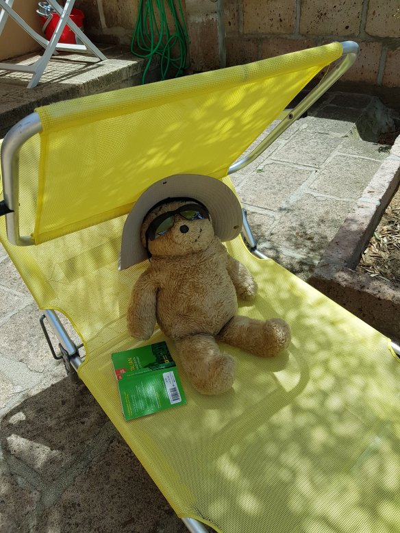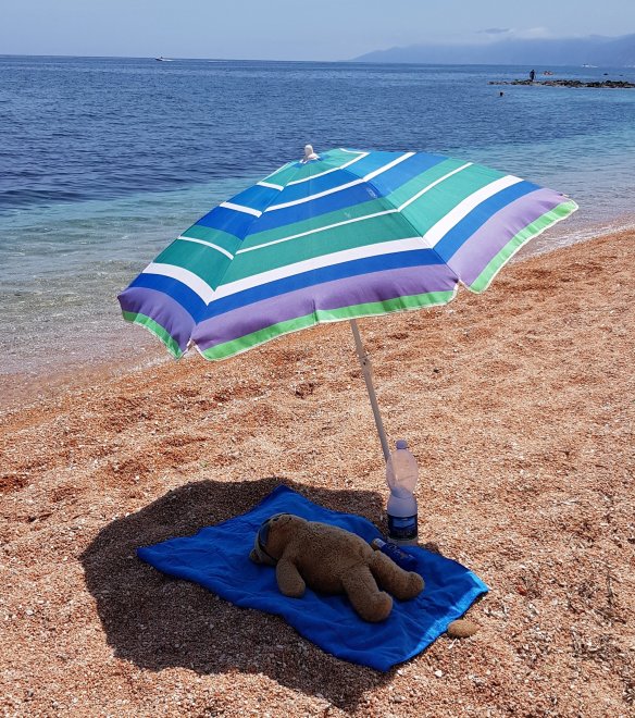 Too hot for a vintage bear though. I have to look after my fur so chilled under the parasol.