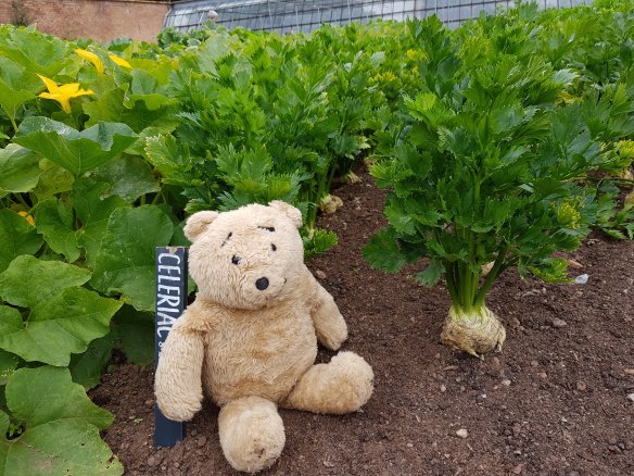 Here I am in the walled garden. A very special place where produce is grown for use in the cafe and sale on the produce table.
