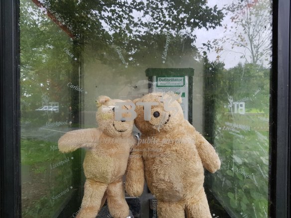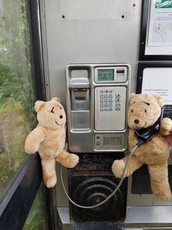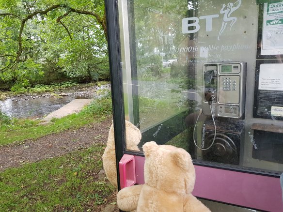 The telephone box states on the outside that it is the 100,000th public payphone, Dunsop Bridge, Centre of Great Britain.
