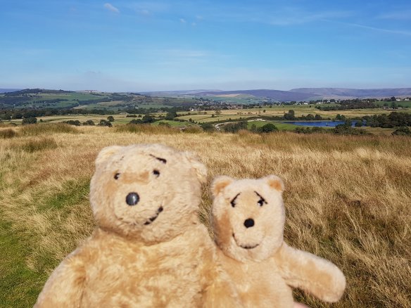 There was a splendid view up by ‘The Cage’. Here we are with The Peak District visible in the distance behind us.