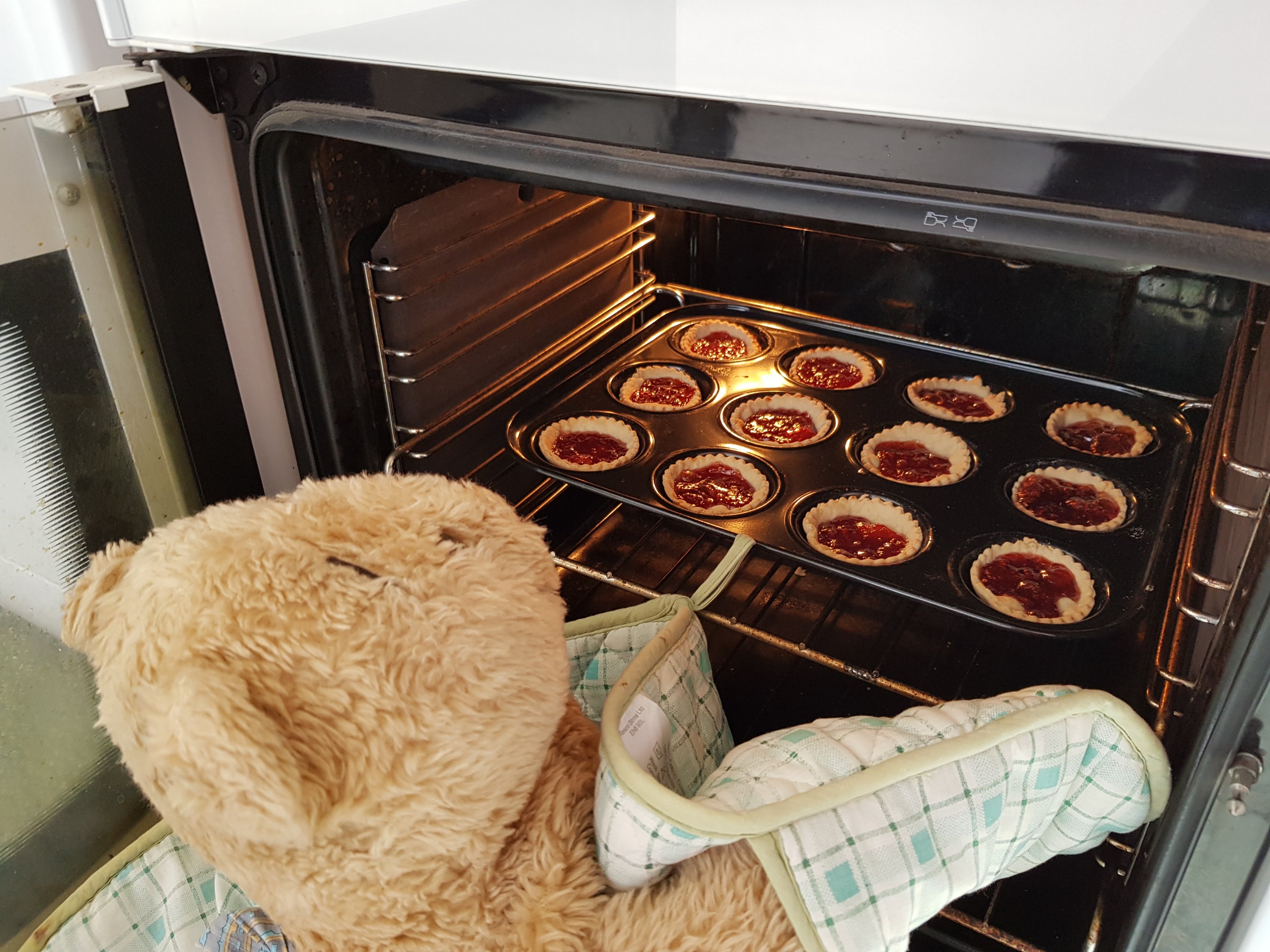 I let my grand human put the jam into the tarts as jam and fur don’t go together very well.