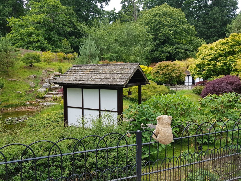 I climbed up onto the fence to view the other half of the Japanese garden.