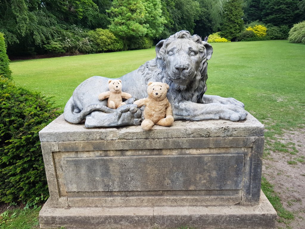 The lions guarding the temple both looked quite friendly, so we posed for a photo with one of them.