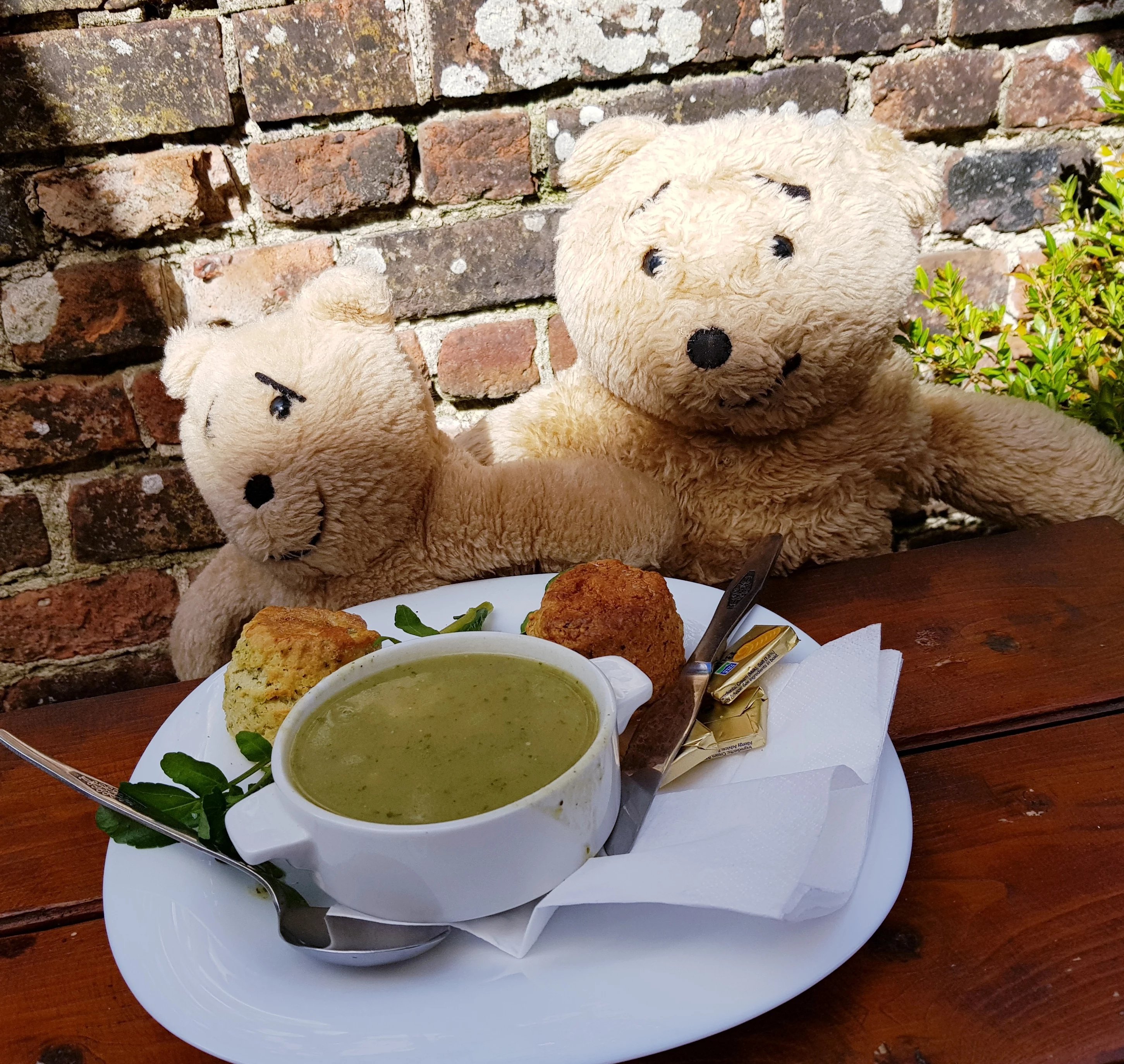 We didn’t have time to stay long so returned to the High Street to find somewhere for lunch. Watercress soup and scones made from locally grown watercress was delicious, we had this at The Courtyard Cafe which is reached via an alleyway.
