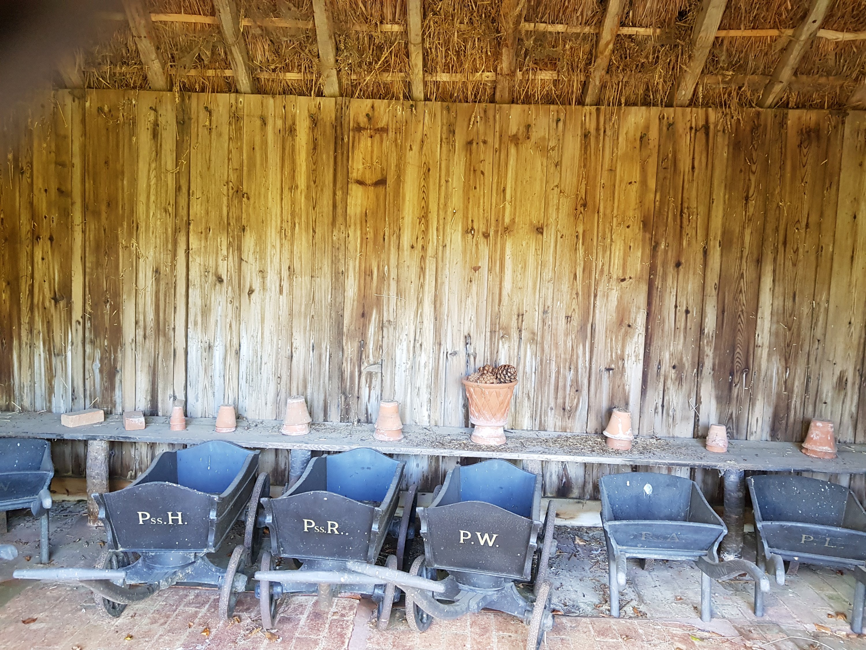The little carts and wheelbarrows used to belong to Queen Victoria’s children, she had 9 altogether. They were all personalised with the initials of the princes and princesses.