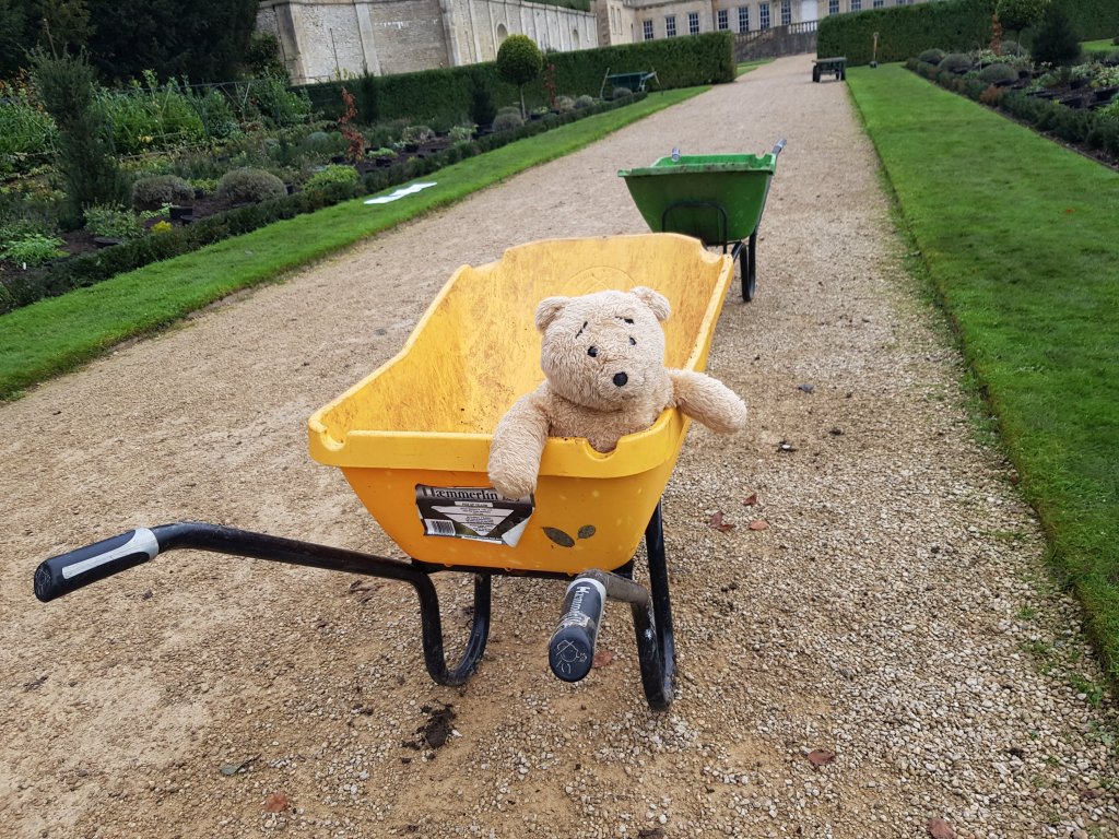 Wheelbarrows always look better with small bears inside…