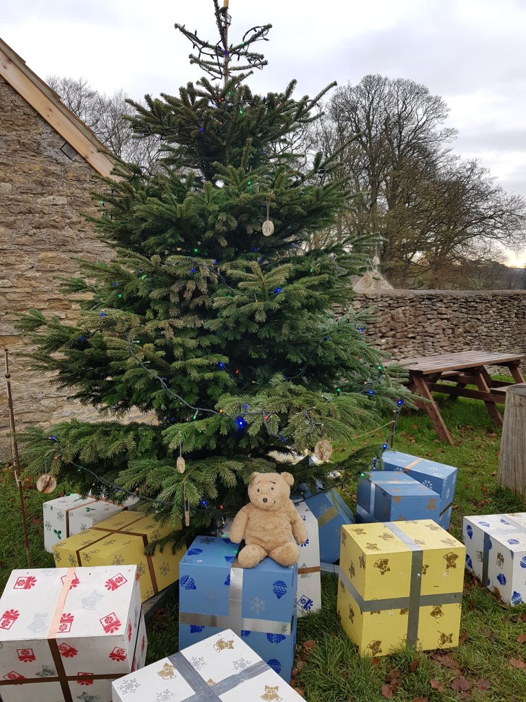 At the Old Lodge there was a Christmas tree surrounded by very large presents. The boxes were big enough to contain big teddy bears.