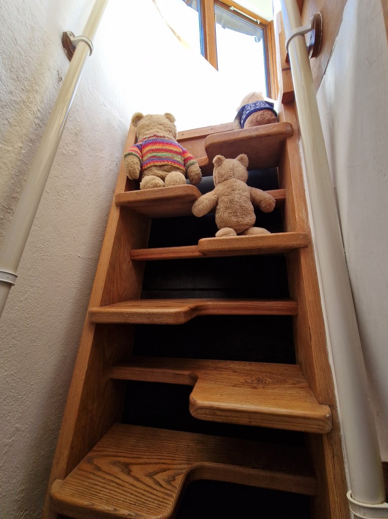 The last flight of stairs up to the top was very steep for bears with short legs.