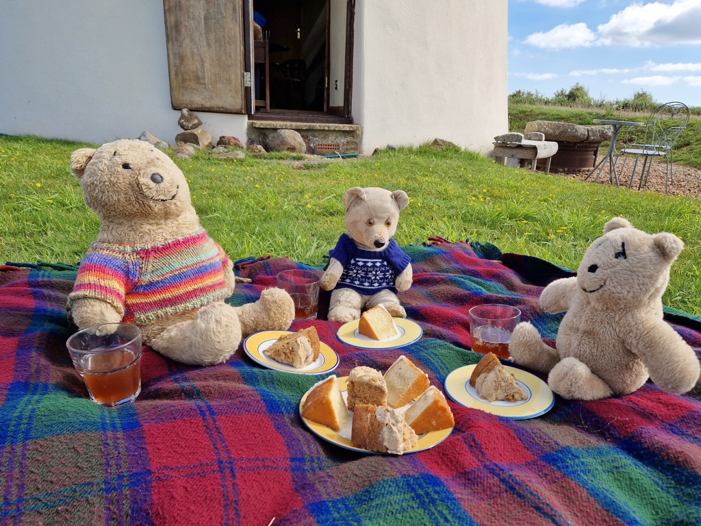 On our last day the humans went out walking so we decided to have a teddy bear’s picnic sat outside in the sunshine.