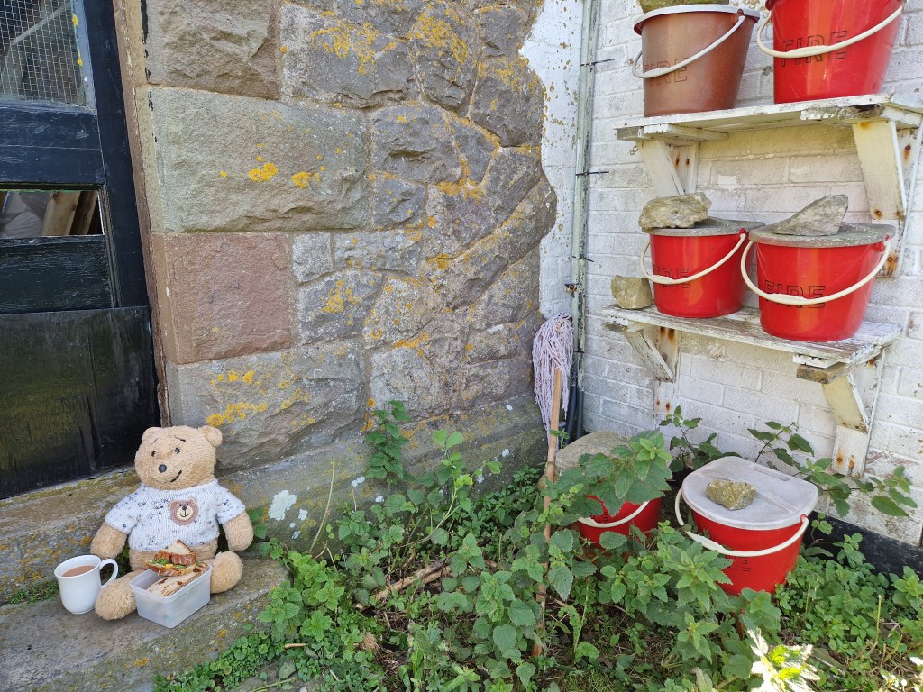 It was lunchtime, there is a pub called ‘The Gull & Leek’ in the old barracks, where we got mugs of tea. I sat and ate my packed lunch in a shady spot opposite next to the fire buckets.