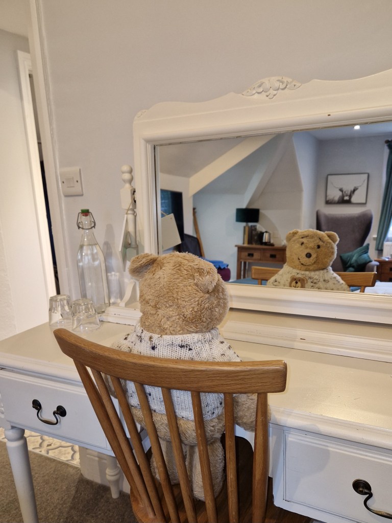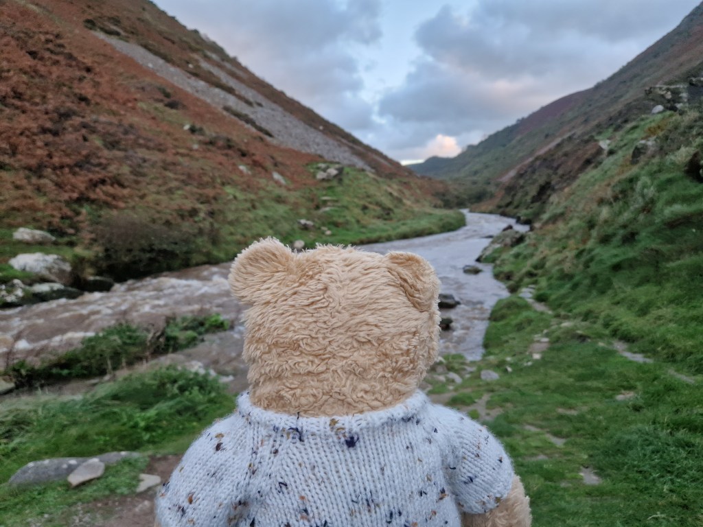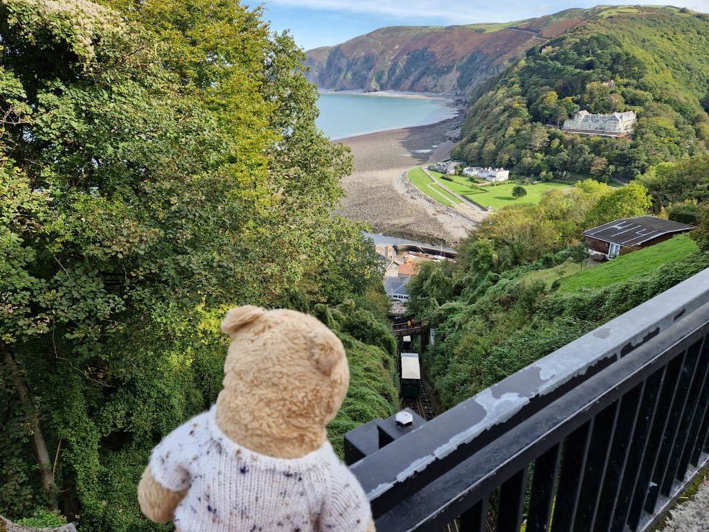 Once at Lynton I spent a while watching the cliff railway. It was four years ago that I travelled on it with Nye. (See https://horacethealresfordbear.com/2019/10/16/re-visiting-watersmeet-where-my-tile-is-now-on-the-roof/)