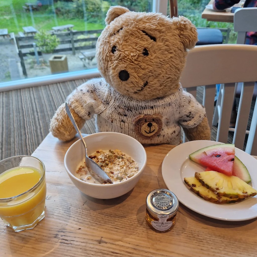 …..finished off with honey on toast. I only had one piece of toast as there was a danger that my jumper would get stretched too much. I didn’t need any more food for the day.