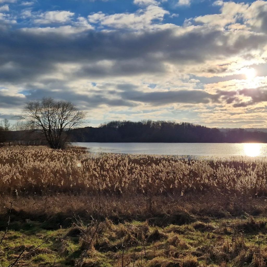 It was a beautiful January day, very cold but with the sun shining. The lake looked very calm and peaceful. Most of our drinking water originates from this lake. The lake looks as though it has always been there, but it was built by humans in the 1950’s. See https://www.bristolwater.co.uk/our-blogs/chew-valley-lake-history