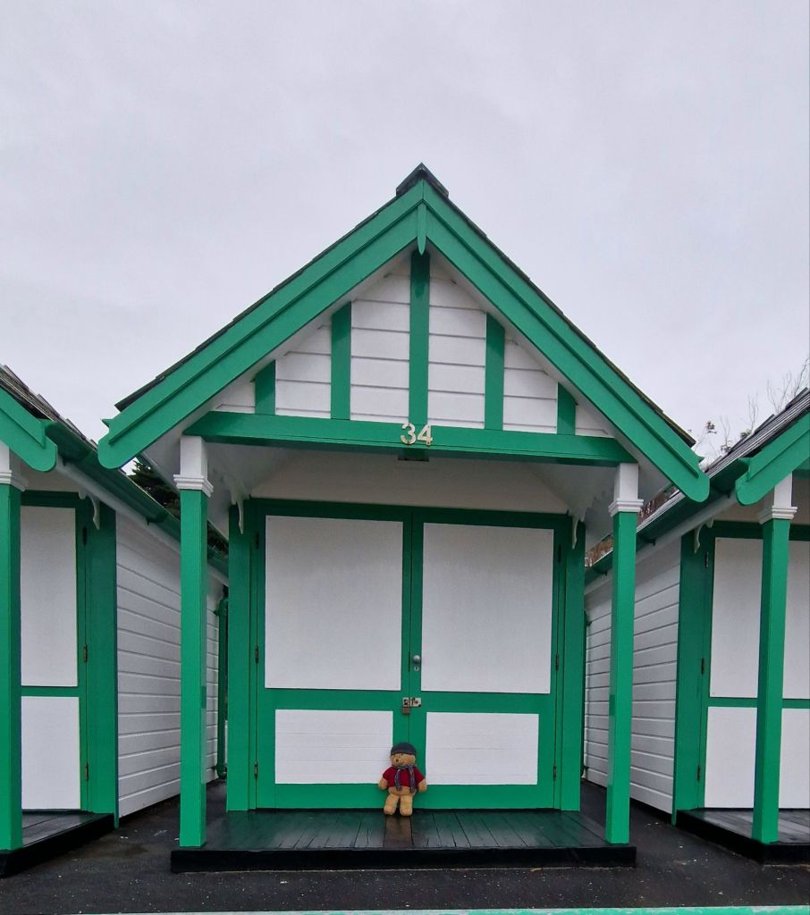 I do like beach huts so I walked up and down having a good look at them. The windows had been boarded up for winter.
