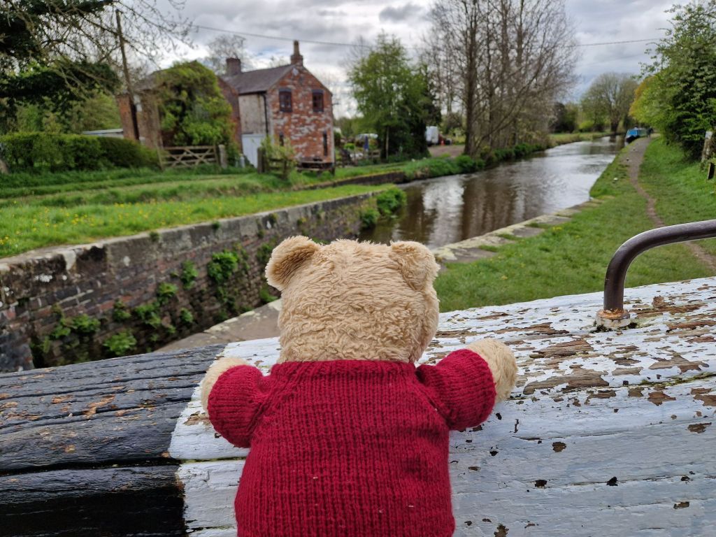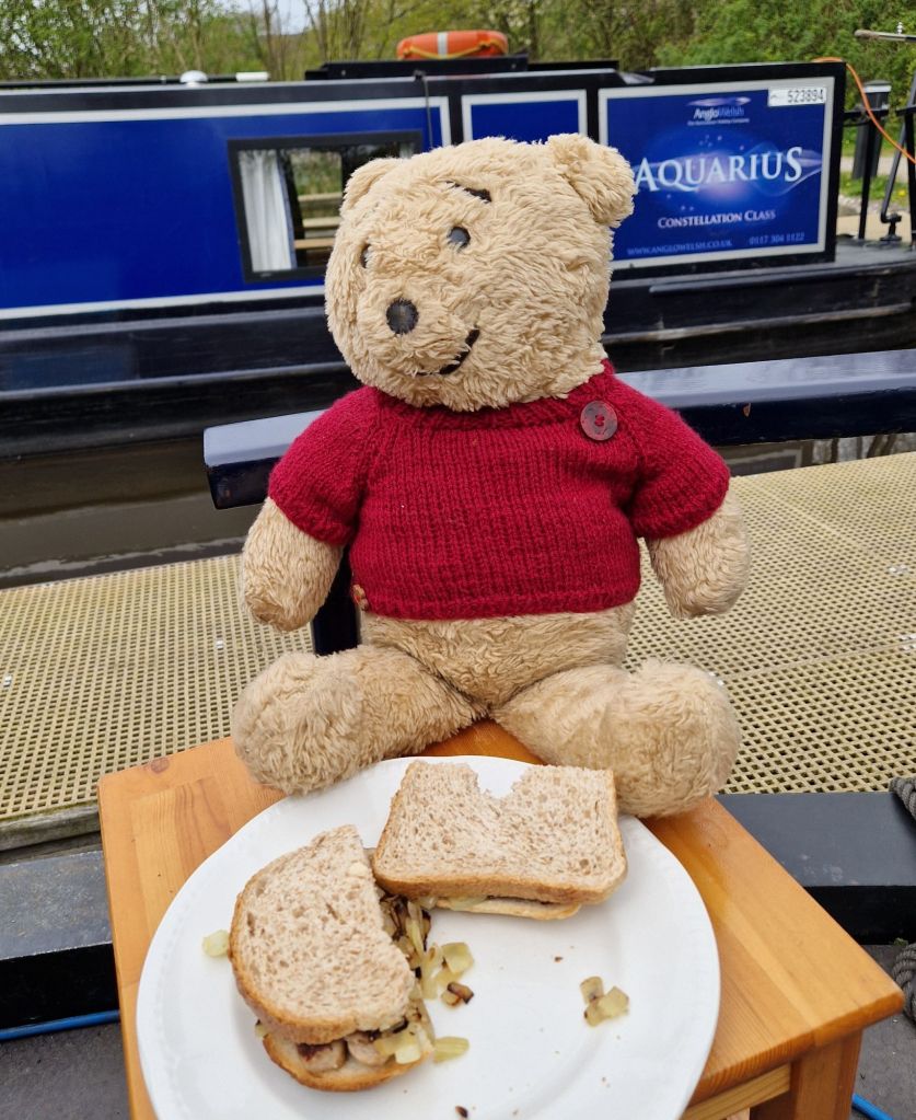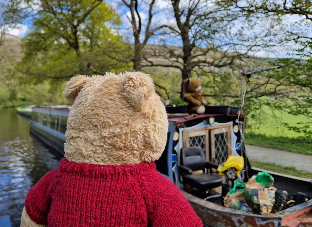 We chugged on – narrowboats only travel at 4 miles an hour, so don’t get anywhere fast. I said ‘Hello’ to this bear as we went past, and he waved at me!
