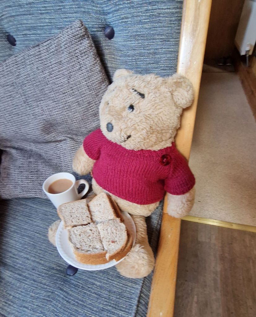 Little Bear enjoyed a hot cross bun with me. It was a bit big for him so I had to help him finish it. Bears do like buns.