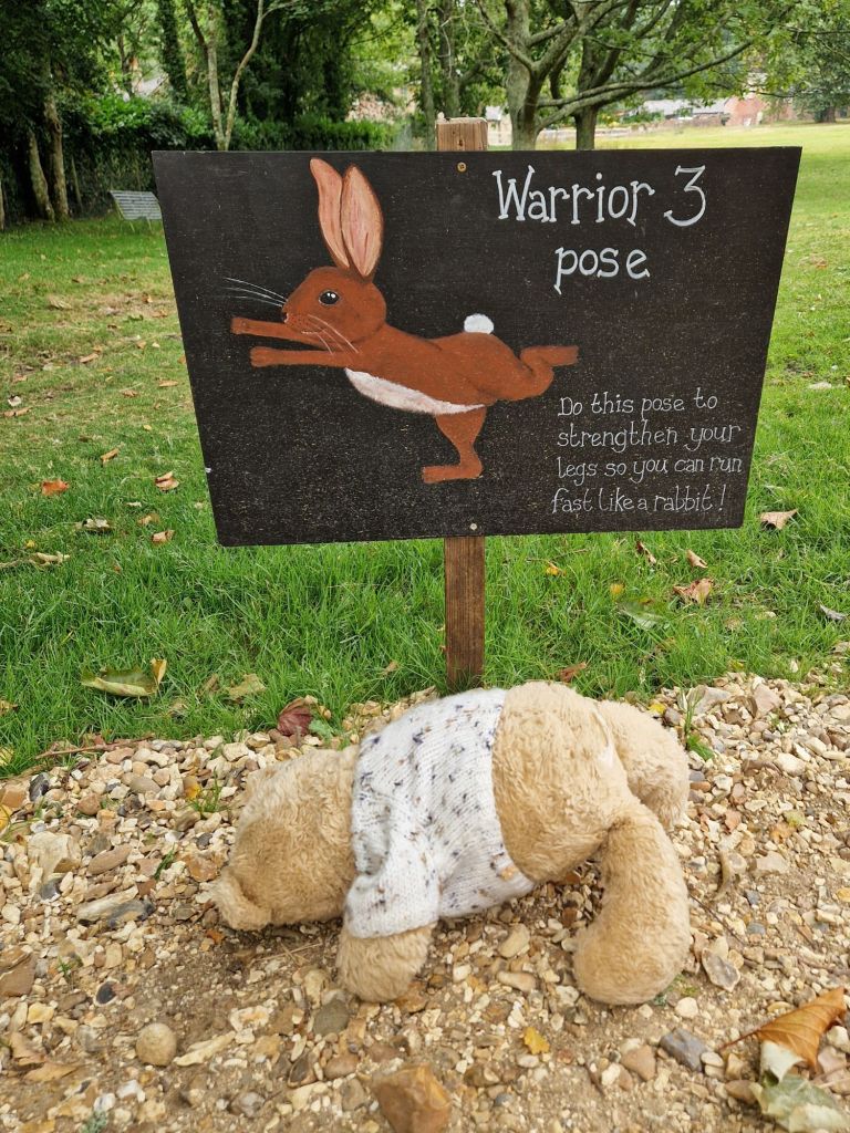 The trail for human children suggested doing a ‘Warrior’ pose to strengthen legs. As my legs don’t always hold me up very well, I had a go, and failed….