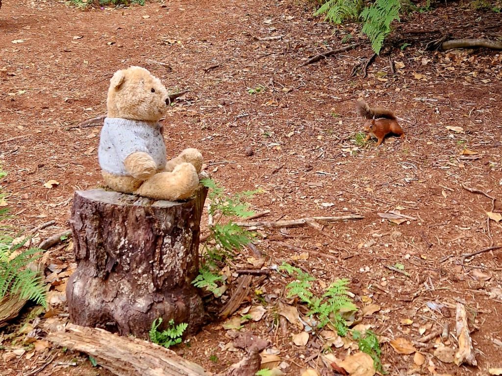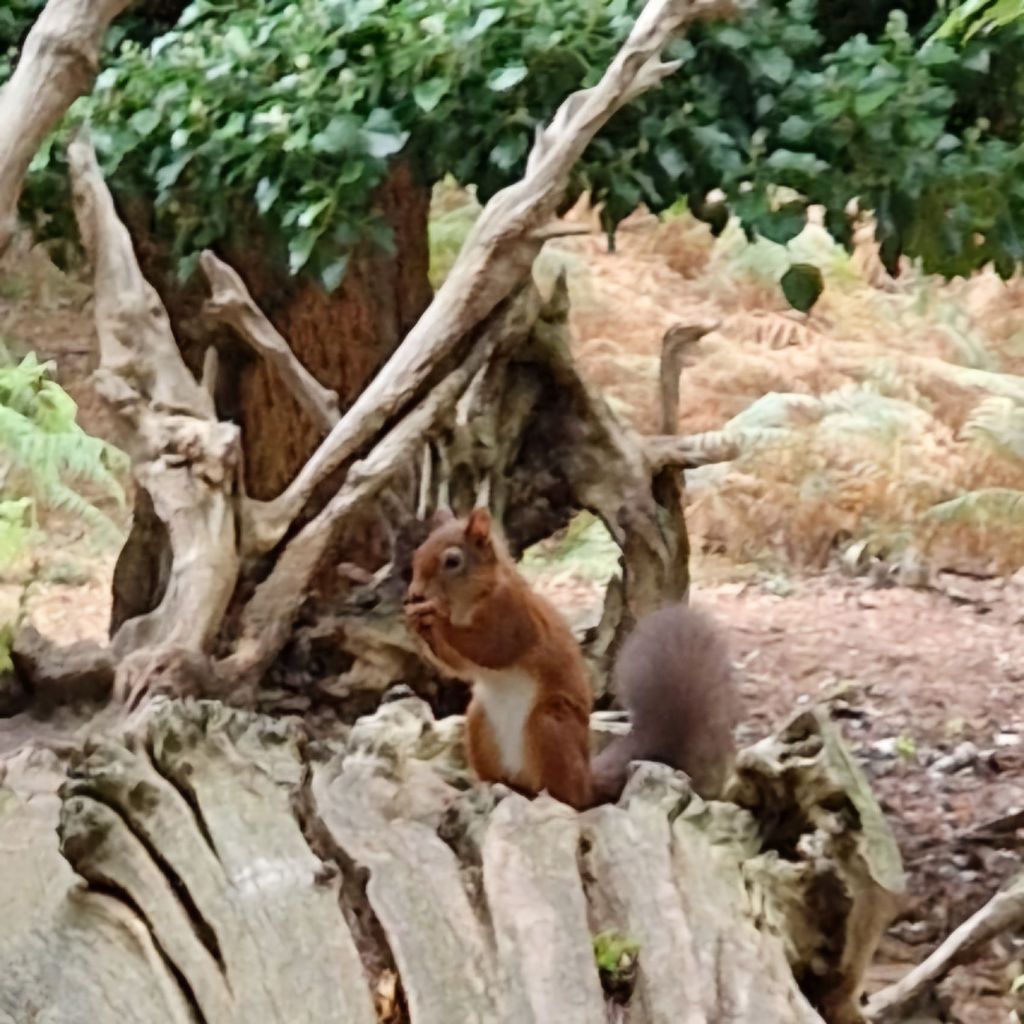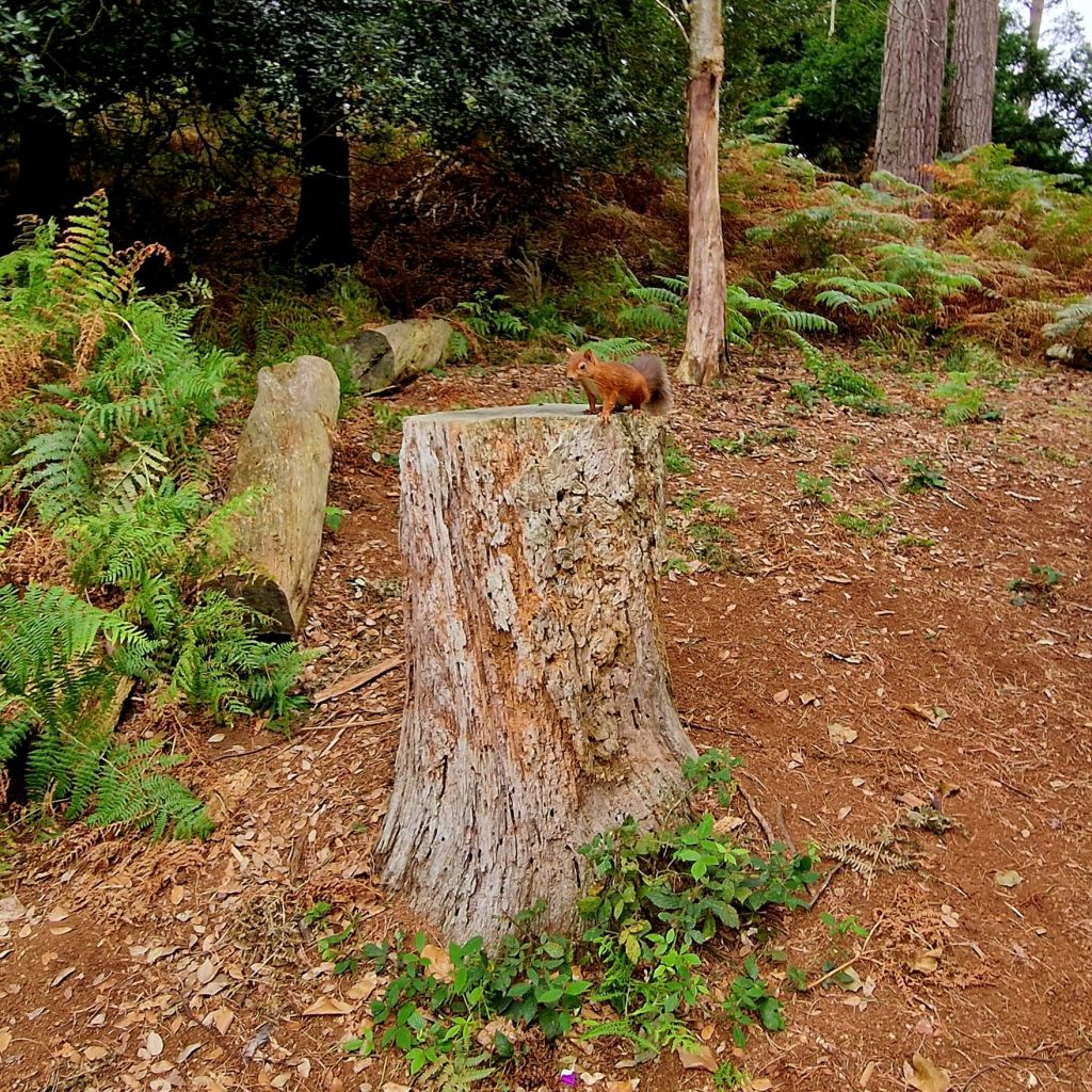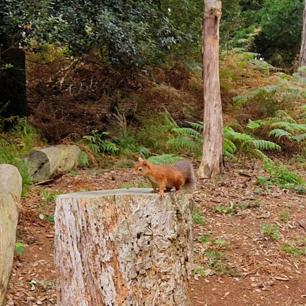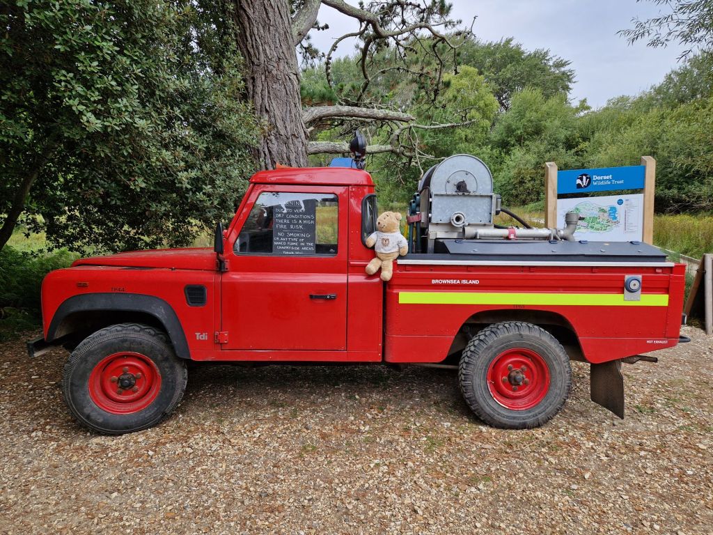 I posed for a photo with the bright red fire engine before setting off to look for red squirrels.