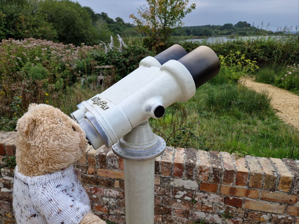 I couldn’t see much on the wall so tried the giant binoculars, and could see some birds in the water.