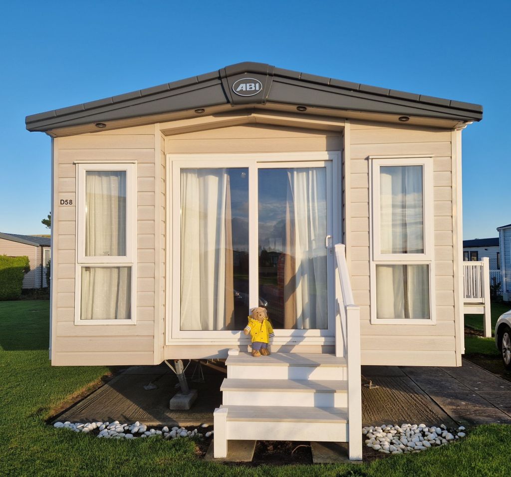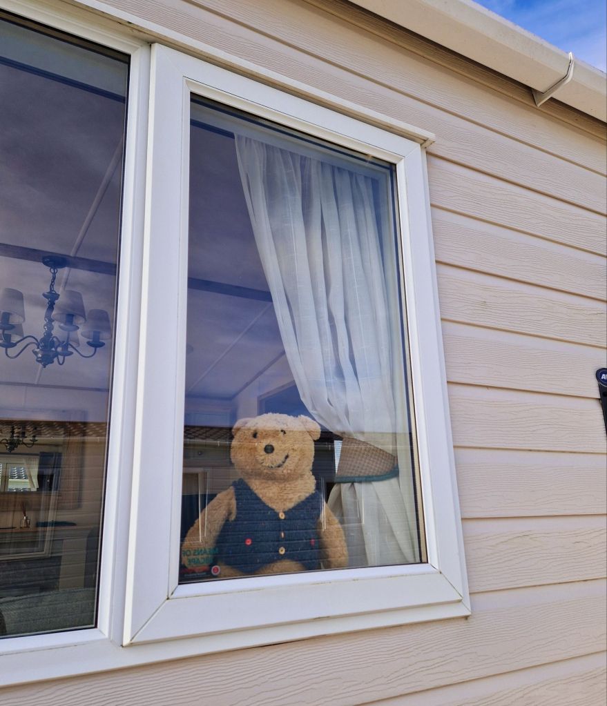 The mobile home at Durdle Door Holiday Park was just the right size for a small bear (and some humans)
