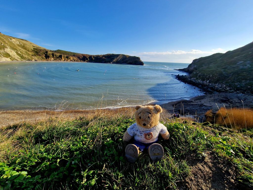Later in the day my human took me out in the bear carrier to Lulworth Cove, which is just over a mile away from Durdle Door along the coast path.