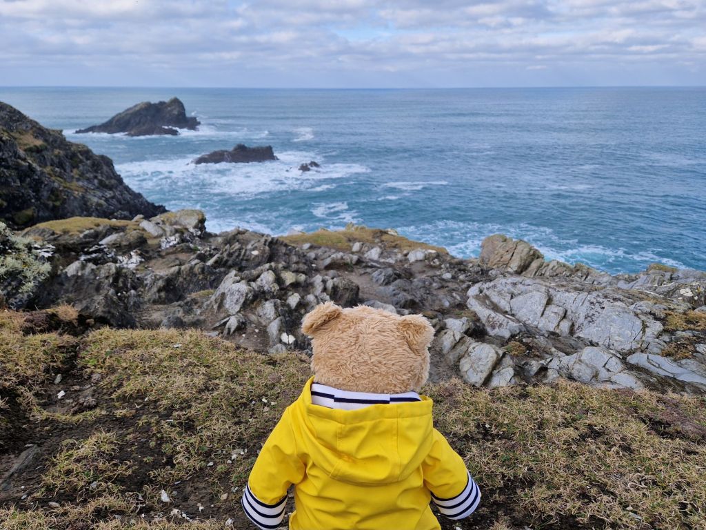 On the cliff above Watergate Bay, I had to remove my cap to prevent it being blown away.