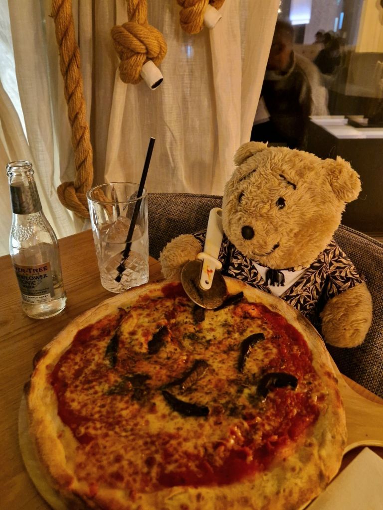 Once back at the hotel after a little nap and brush up of the fur it was pizza time! I will confess I didn’t eat it all but shared it with my humans.