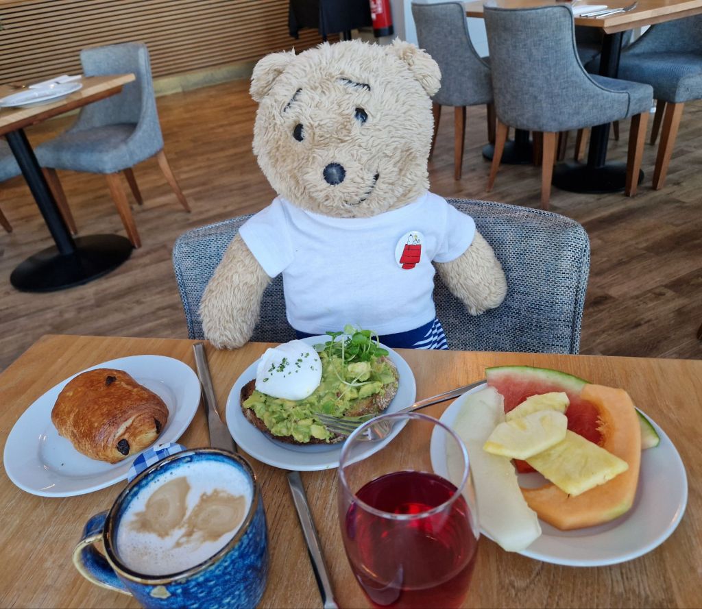 After a good night’s sleep it was time for more food. I had avocado on toast with an egg for starters, followed by chocolate croissant and fruit.