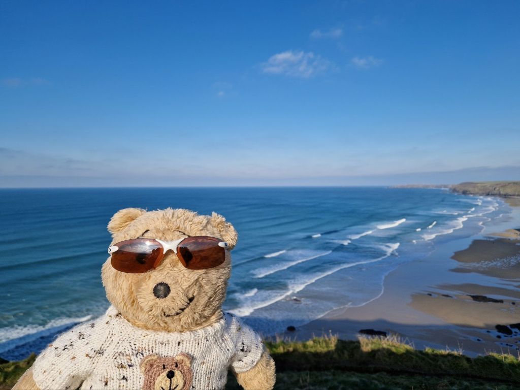 After a bit more walking on footpaths, then across a golf course, we were finally back at Fistral Beach.