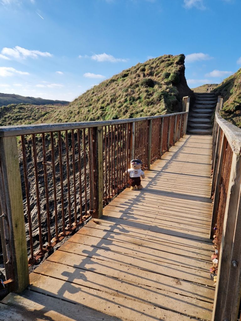 There is an interesting house built on top of a very small island with a bridge leading to it on Towan Beach; my human can remember it being there when she was a little girl holidaying in Newquay.