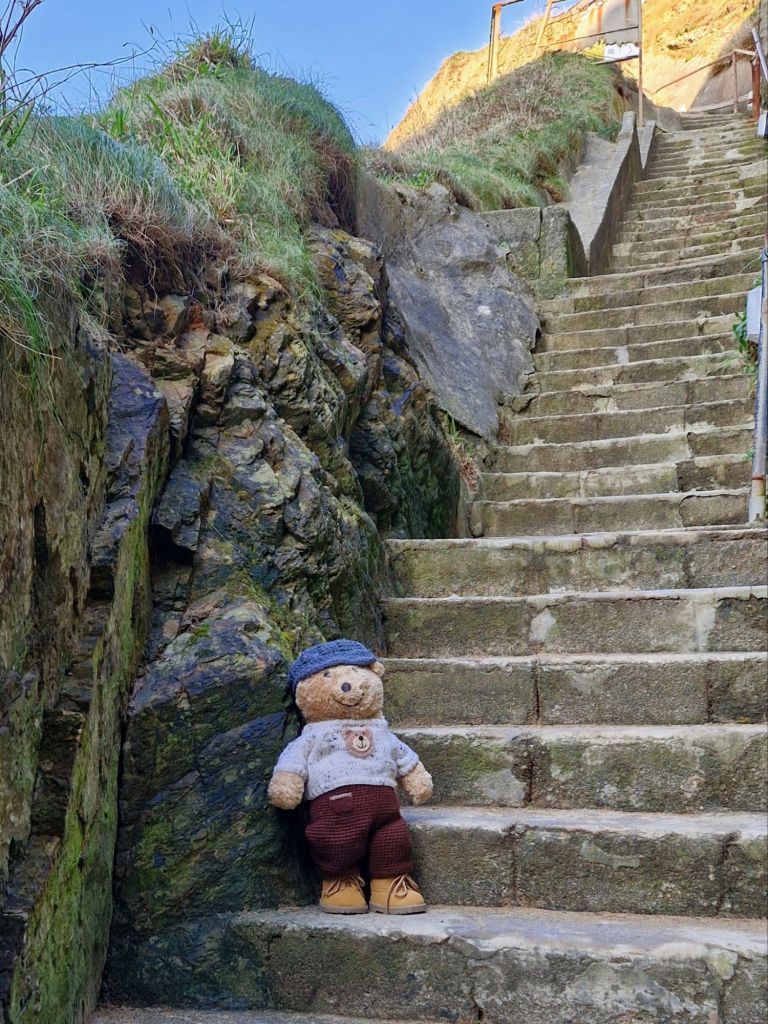 After walking past houses and other humans development we arrived at steps leading to Lusty Glaze Beach. There are many many steps going down to the beach.