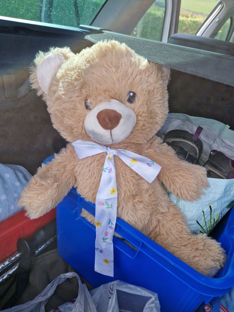 The dear lost bear couldn’t remember her name. She had been run over by a car and was rather traumatised. As we had found her near the seaside we decided to call her Sandy.