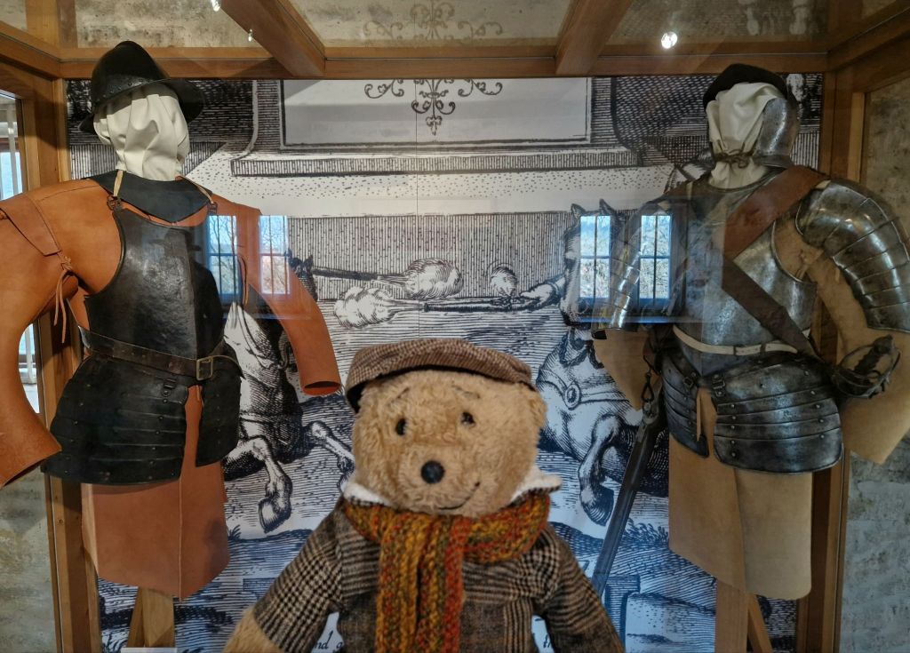 The figure on the left is wearing ‘part armour’ over a thick buffalo hide jacket, which pikemen would have worn in preparation for battle. They had to wear the armour to the battle site and it was very heavy so preferred to rely on the leather to protect them rather than full armour.The figure on the right is wearing the armour of a mounted trooper from about 1620. It all looks very uncomfortable.