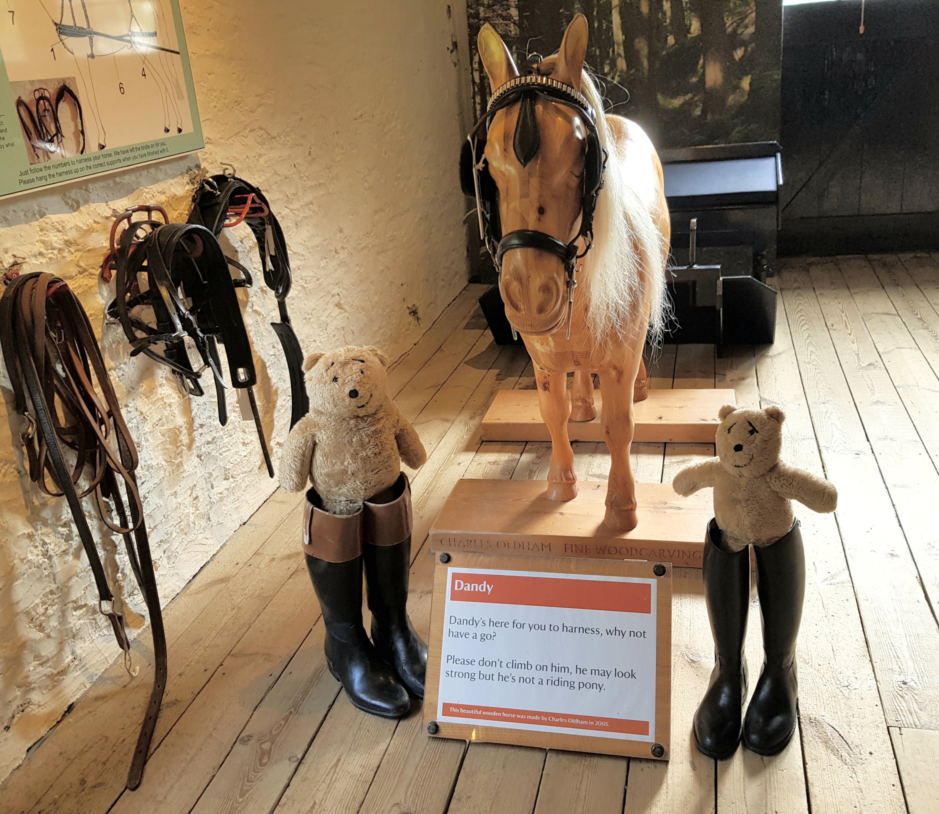 We tried on some splendid riding boots that made us both much taller.