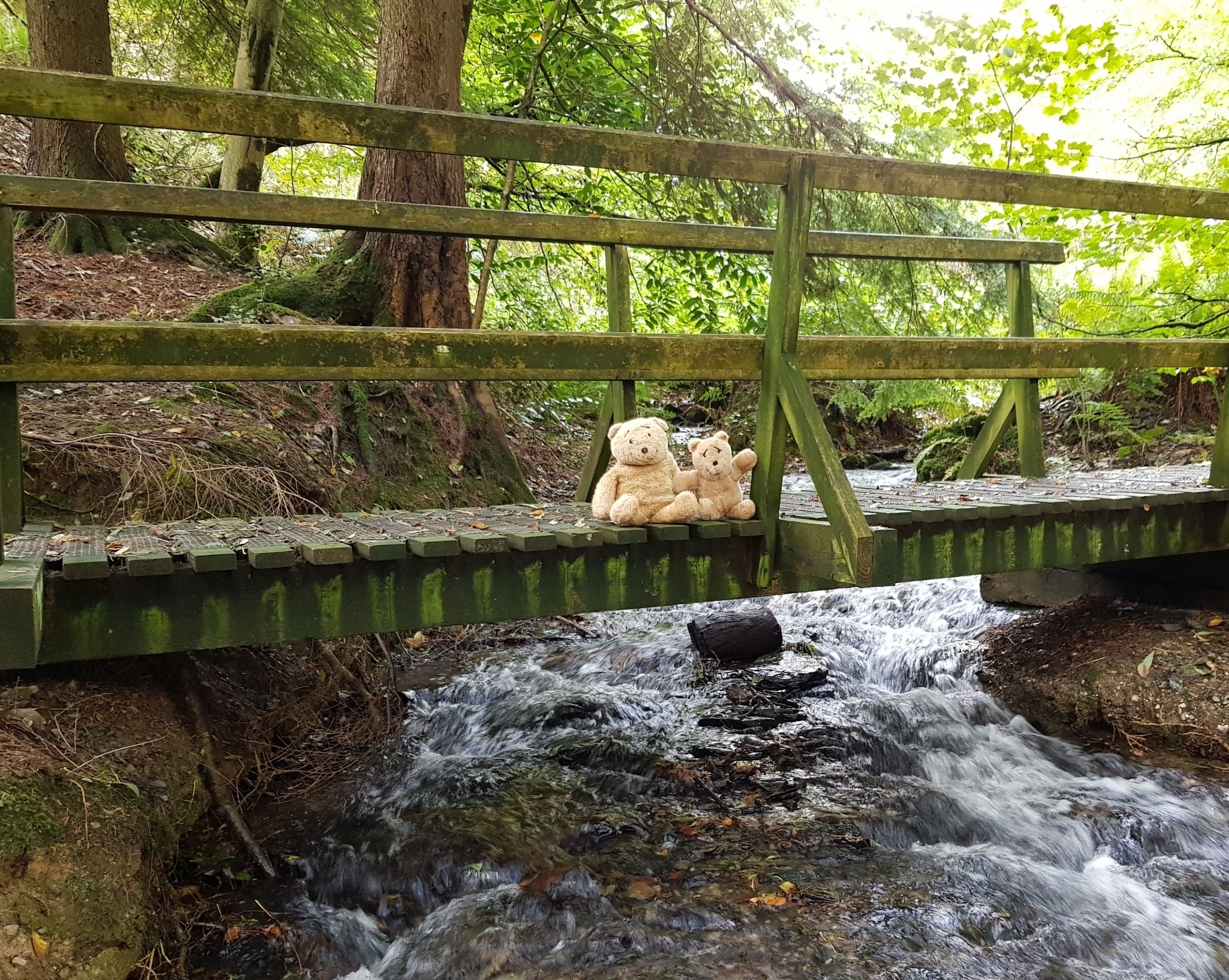 We wandered on further and got quite excited when we saw signs pointing to ‘The Wilderness’. We found a great place for bears and humans that like to play (such as children). We played ‘Poohsticks’…..