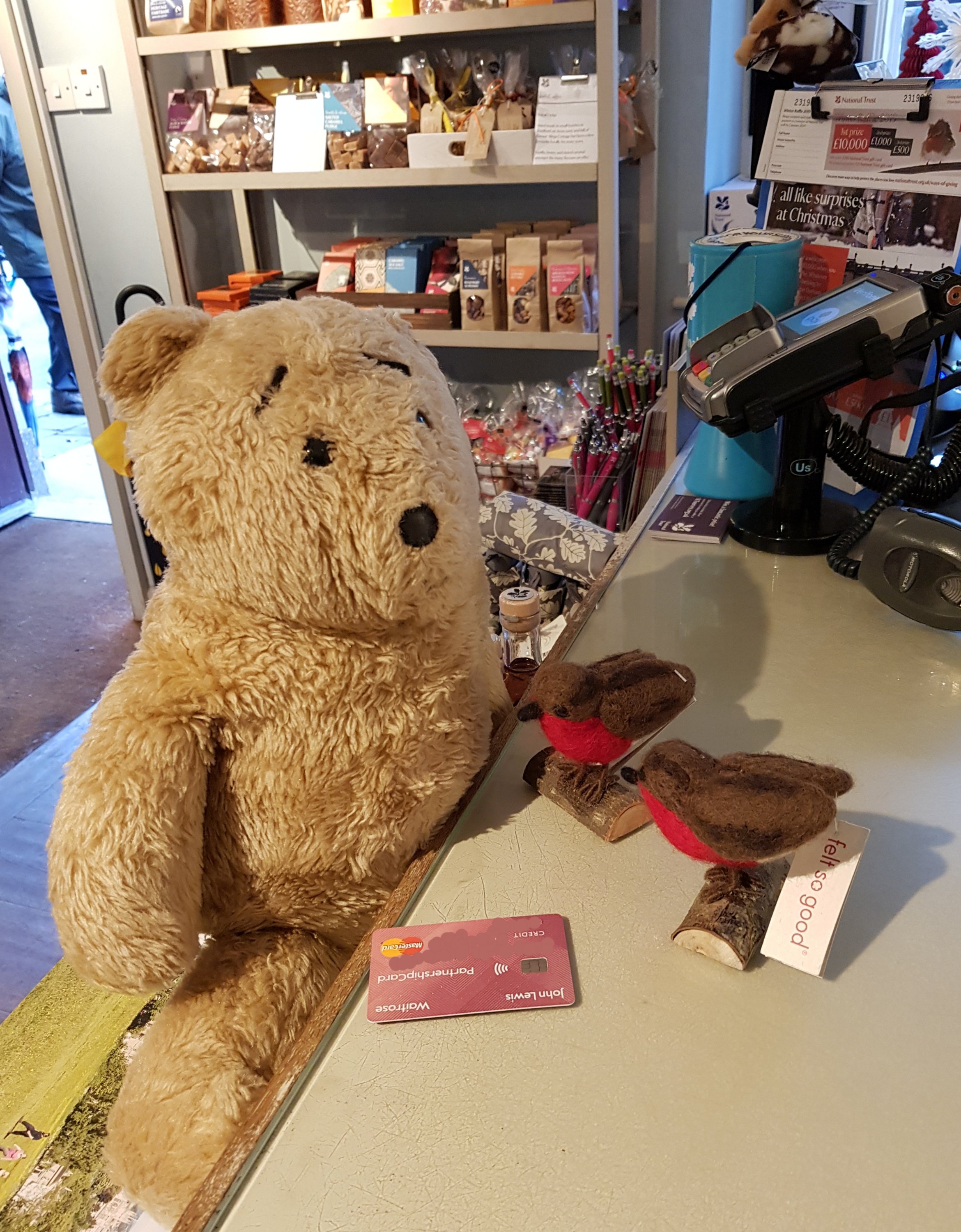 I bought the humans a couple of felt robins in the shop before getting back into the bear carrier for the cold walk back to the carpark.