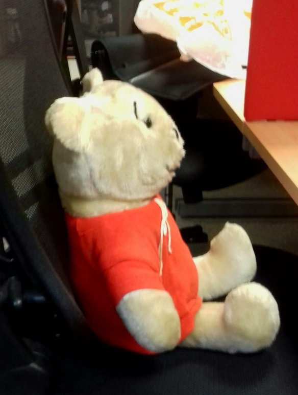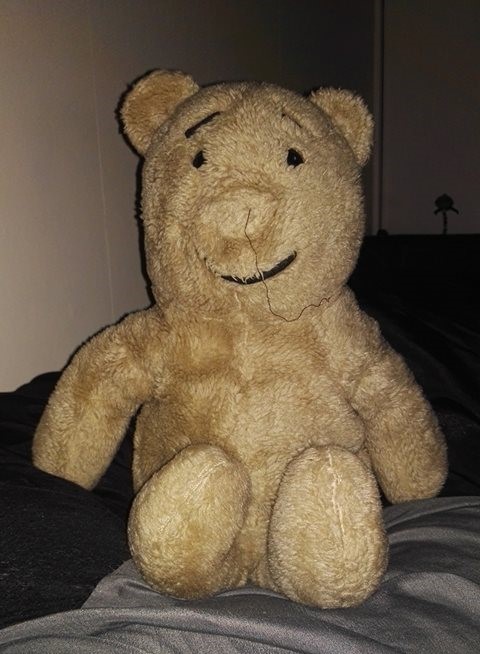 This is Pooh, who is waiting for nose surgery. He lives in Cambridge and was made in the 70’s.