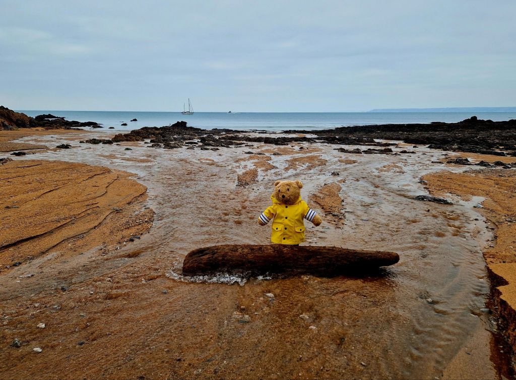 My human nearly got wet feet while taking this photo, the tide came in over her toes, so we moved back a bit. My wellington boots float when in water as I am not heavy enough to keep them on the ground.