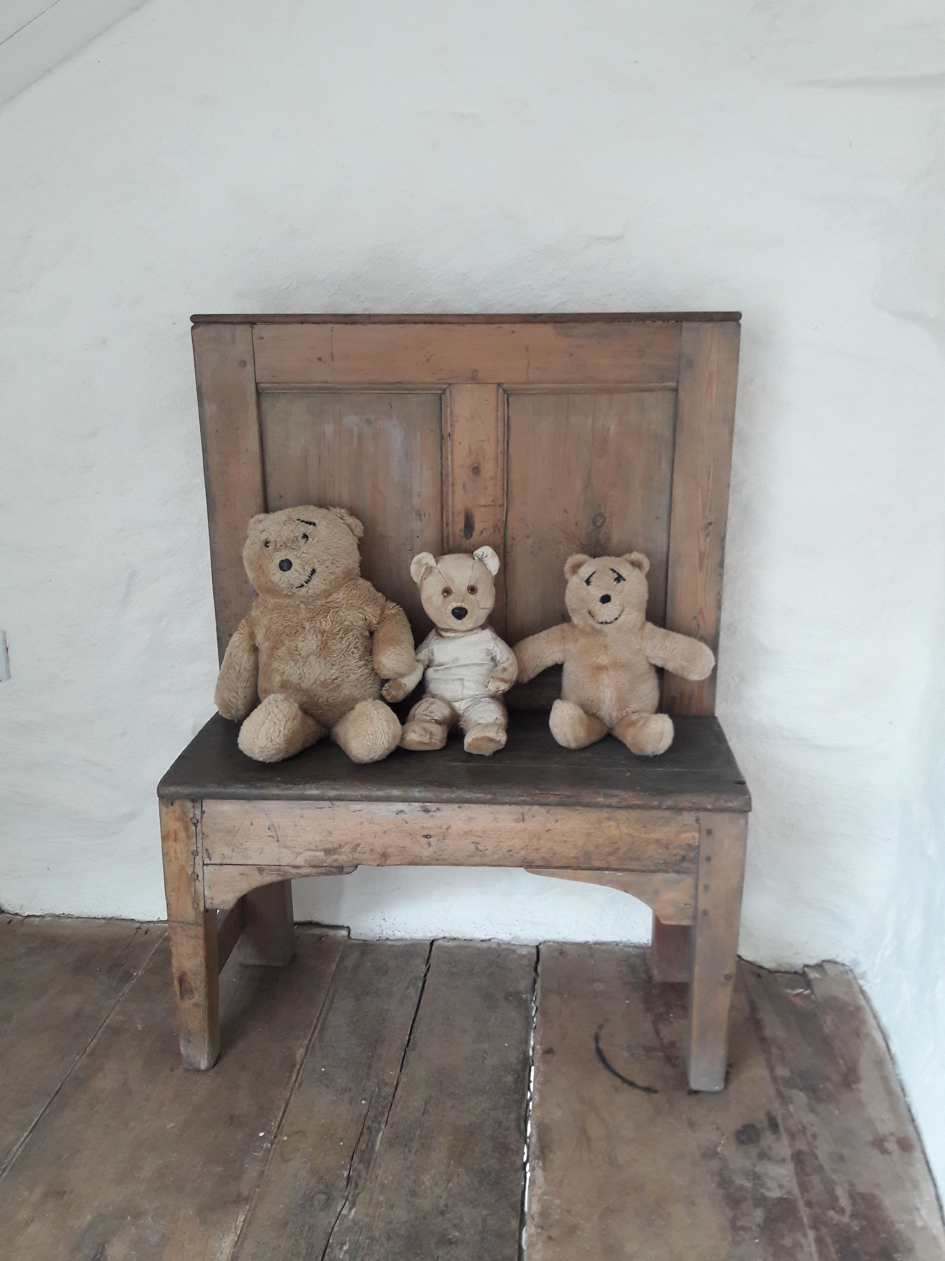 We went into the house and found arts and crafts for sale. I had a chat with one of the grey knitted bears.